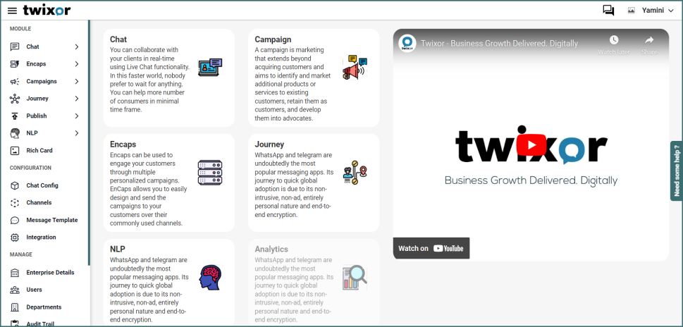 In theory, all the components of the dashboard tell a coherent story to the users, which they can act on. Below listed are the elements present in Twixor's Dashboard. Each element of the dashboard would redirect user to that particular feature/page.
